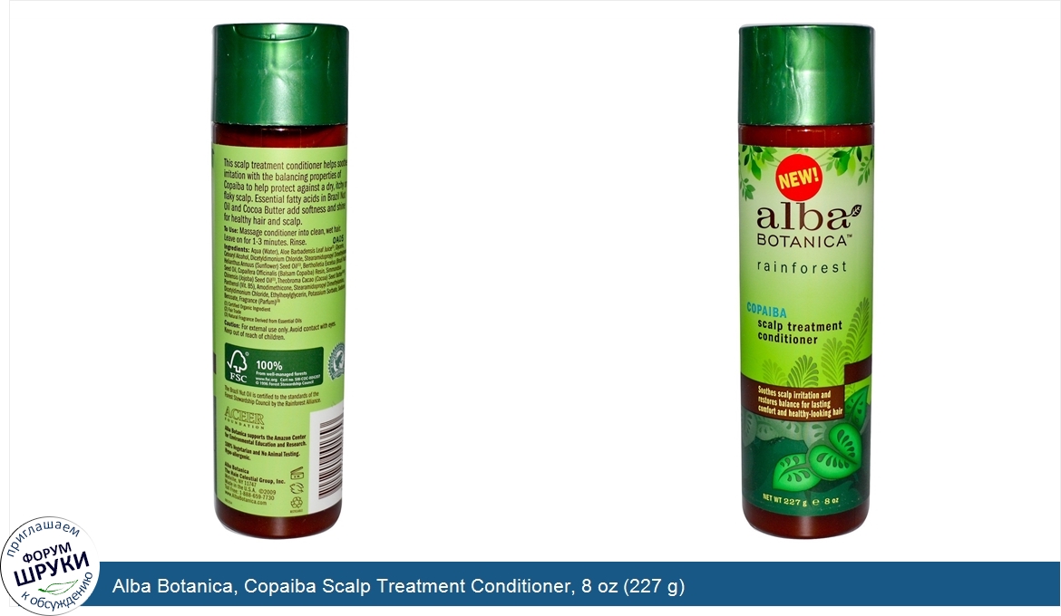 Друзья, если у вас есть отзыв/дополнение/комментарий/вопрос относительно Alba Botanica, Copaiba Scalp Treatment Conditioner, 8 oz (227 g) - напишите его ответом в эту тему (это будет полезно всему сообществу в целом и вам в отдельности).