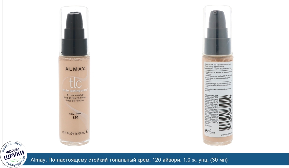 Друзья, если у вас есть отзыв/дополнение/комментарий/вопрос относительно Almay, По-настоящему стойкий тональный крем, 120 айвори, 1,0 ж. унц. (30 мл) - напишите его ответом в эту тему (это будет полезно всему сообществу в целом и вам в отдельности).