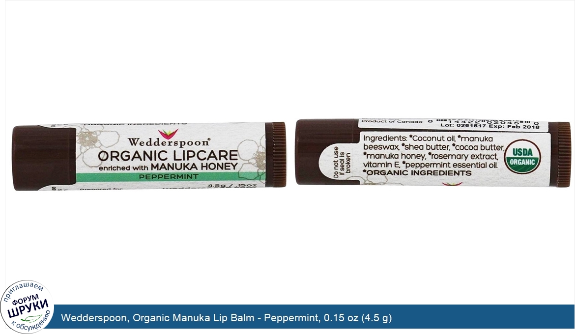 Друзья, если у вас есть отзыв/дополнение/комментарий/вопрос относительно Wedderspoon, Organic Manuka Lip Balm - Peppermint, 0.15 oz (4.5 g) - напишите его ответом в эту тему (это будет полезно всему сообществу в целом и вам в отдельности).