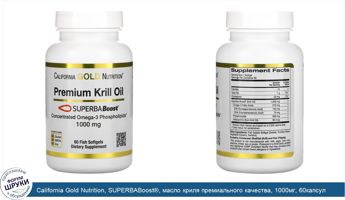 Друзья, если у вас есть отзыв/дополнение/комментарий/вопрос относительно California Gold Nutrition, SUPERBABoost®, масло криля премиального качества, 1000мг, 60капсул - напишите его ответом в эту тему (это будет полезно всему сообществу в целом и вам в отдельности).