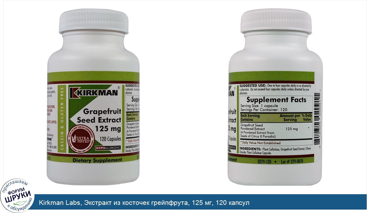 Друзья, если у вас есть отзыв/дополнение/комментарий/вопрос относительно Kirkman Labs, Экстракт из косточек грейпфрута, 125 мг, 120 капсул - напишите его ответом в эту тему (это будет полезно всему сообществу в целом и вам в отдельности).