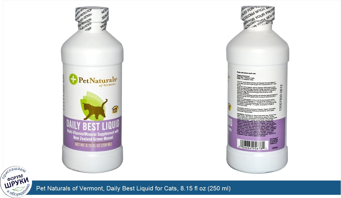 Друзья, если у вас есть отзыв/дополнение/комментарий/вопрос относительно Pet Naturals of Vermont, Daily Best Liquid for Cats, 8.15 fl oz (250 ml) - напишите его ответом в эту тему (это будет полезно всему сообществу в целом и вам в отдельности).