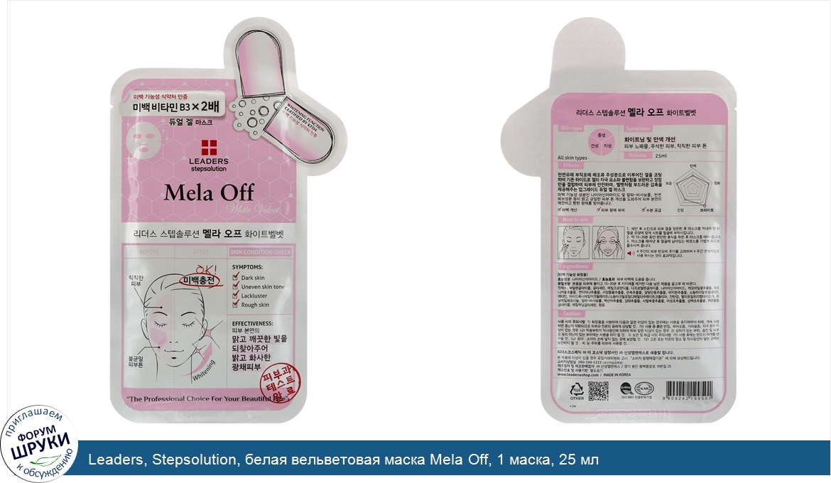 Друзья, если у вас есть отзыв/дополнение/комментарий/вопрос относительно Leaders, Stepsolution, белая вельветовая маска Mela Off, 1 маска, 25 мл - напишите его ответом в эту тему (это будет полезно всему сообществу в целом и вам в отдельности).