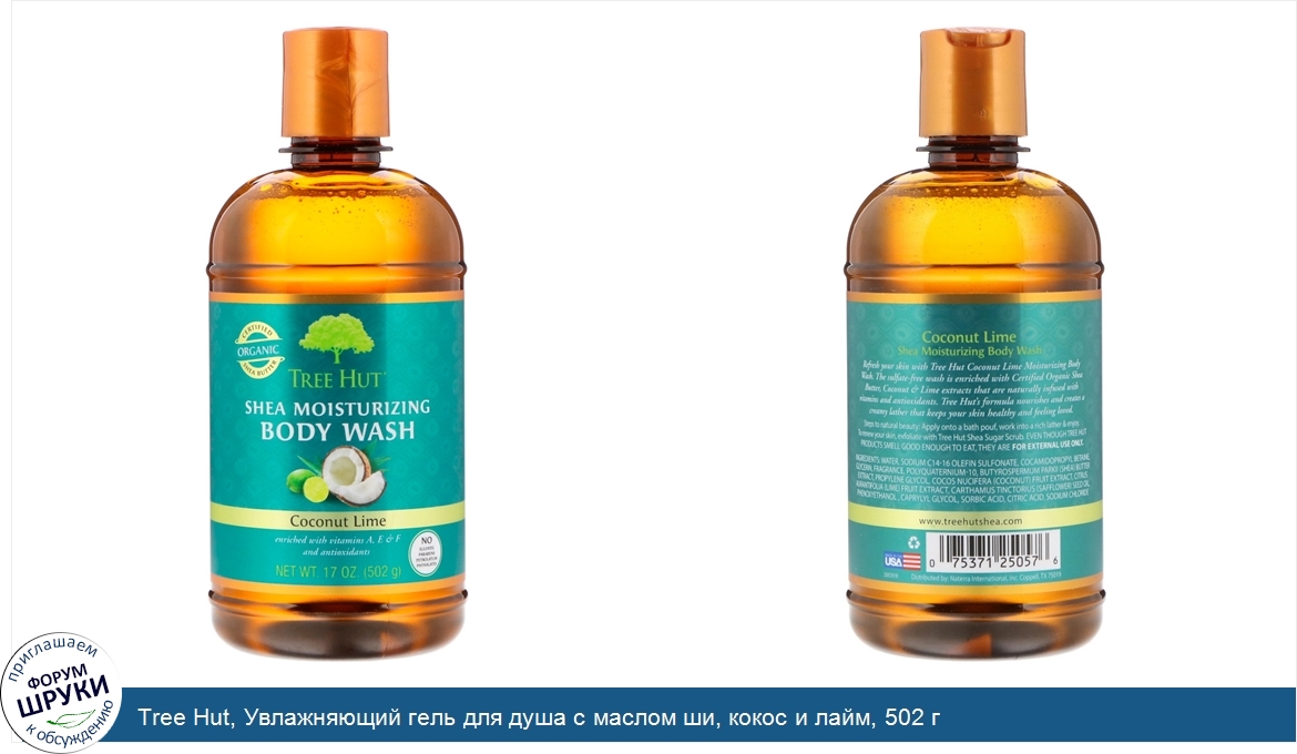 [DESCRIPT]Certified Organic Shea Butter. Enriched with Vitamins A, E F and Antioxidants. Refresh your skin with Tree Hut Coconut Lime Moisturizing Body Wash. The sulfate-free wash is enriched with Certified Organic Shea Butter, Coconut Lime extracts that are naturally infused with Vitamins and antioxidants. Tree Hut's formula nourishes and creates a creamy lather that keeps your skin healthy and feeling loved.[/DESCRIPT]... (описание дополняется)