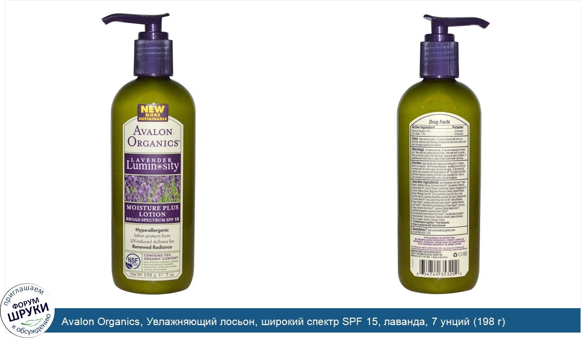 Друзья, если у вас есть отзыв/дополнение/комментарий/вопрос относительно Avalon Organics, Увлажняющий лосьон, широкий спектр SPF 15, лаванда, 7 унций (198 г) - напишите его ответом в эту тему (это будет полезно всему сообществу в целом и вам в отдельности).