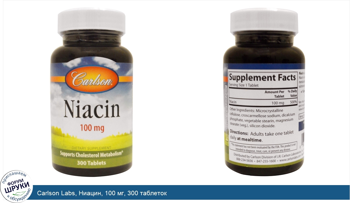 Друзья, если у вас есть отзыв/дополнение/комментарий/вопрос относительно Carlson Labs, Ниацин, 100 мг, 300 таблеток - напишите его ответом в эту тему (это будет полезно всему сообществу в целом и вам в отдельности).