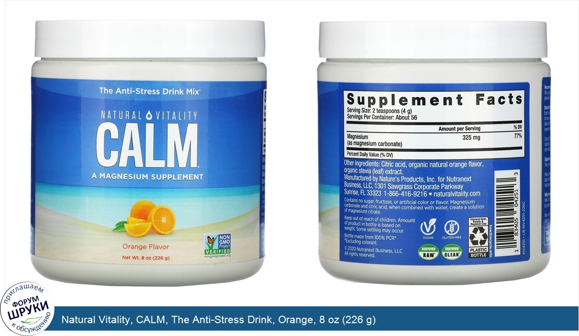 Друзья, если у вас есть отзыв/дополнение/комментарий/вопрос относительно Natural Vitality, CALM, The Anti-Stress Drink, Orange, 8 oz (226 g) - напишите его ответом в эту тему (это будет полезно всему сообществу в целом и вам в отдельности).
