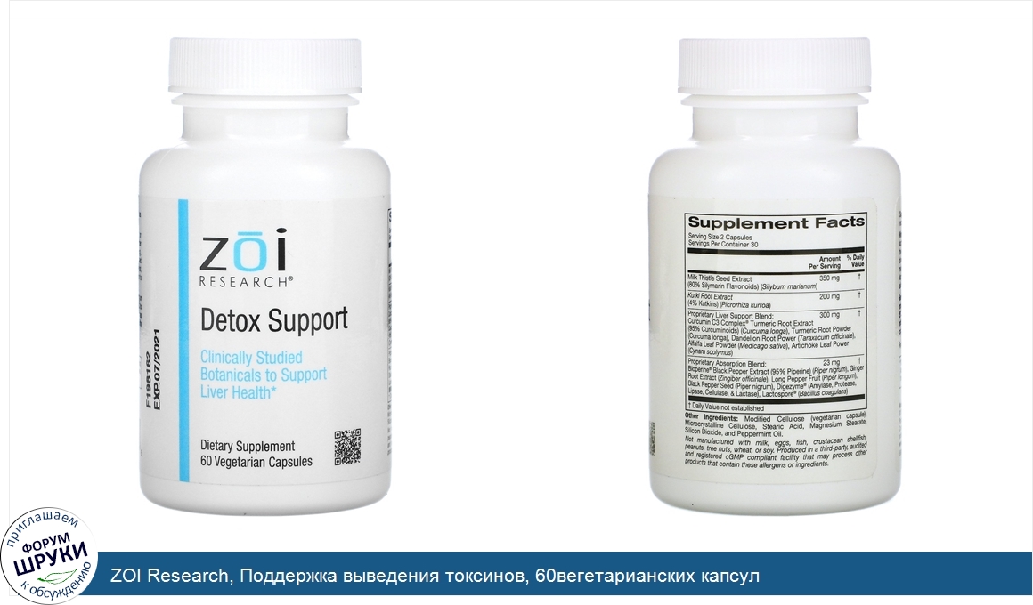 . Поддержка выведения токсинов. от. Zoi Research. Изученные в клинических условиях растительные ингредиенты для поддержки печени*. Расторопша (семена). Корень кутки. Curcumin C3 Complex®. Запатентованная смесь дл...