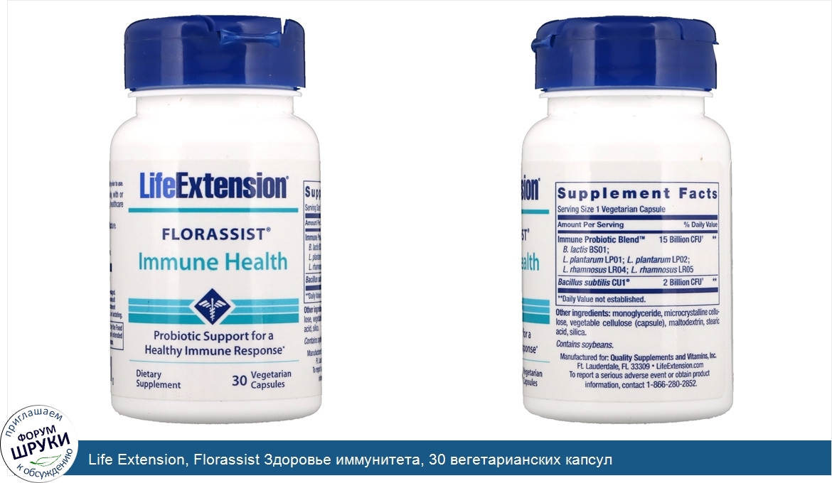 Life Extension, Florassist Здоровье иммунитета, 30 вегетарианских капсул