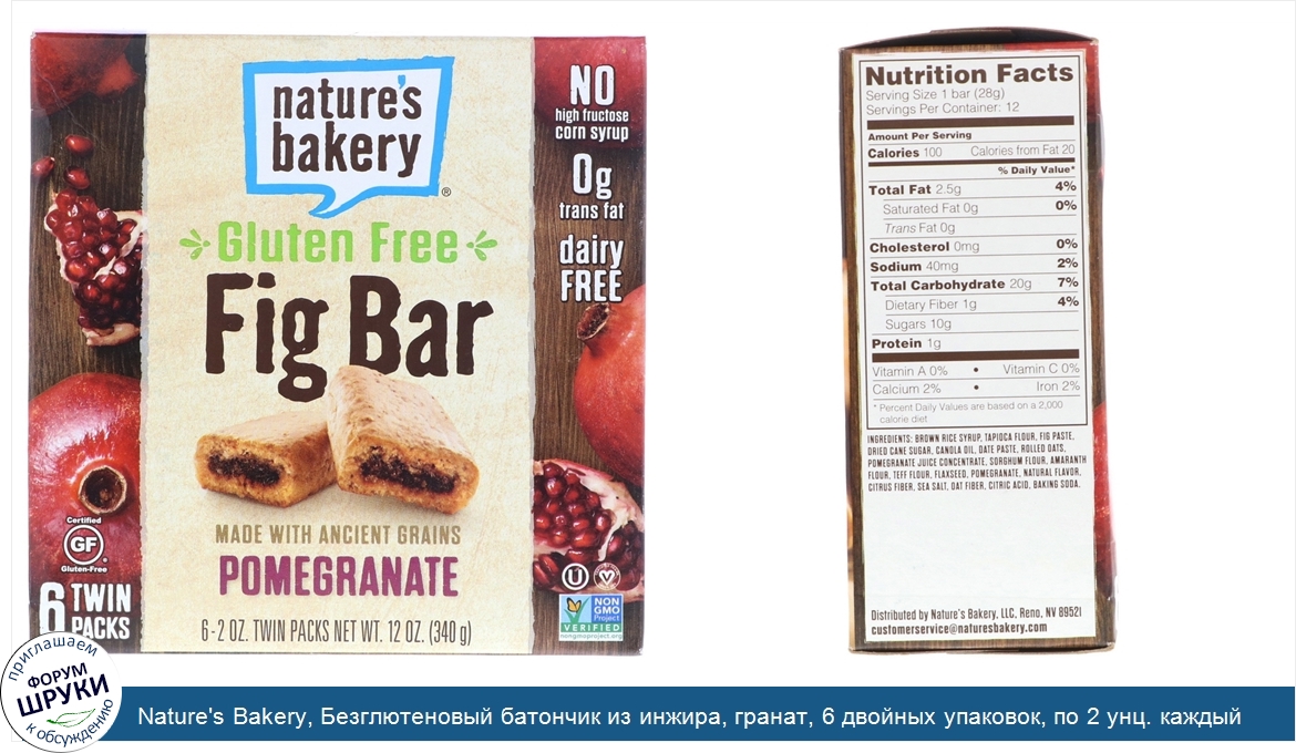 [DESCRIPT]No High Fructose Corn Syrup. 0 g Trans Fat. Dairy Free. Certified Gluten Free. Made with Ancient Grains. Kosher. Certified Vegan. Non GMO Project Verified. Bake It Up A Notch! Hi there. We're Nature's Bakery, Started by father and son bakers. Dave and Sam Marson, we're on a mission to introduce a snack-hungry world to a new take on baked. Fueled by a desire to re-imagine good into great. We bake according to three rules:. Simple ingredients are king. It's gotta taste amazing. If we don't love it, we won't bake it. You get the picture, and so will your taste buds, because the result is delicious snacks you can trust any time of the day. So wherever life takes you, take us along for the ride.[/DESCRIPT]... (описание дополняется)