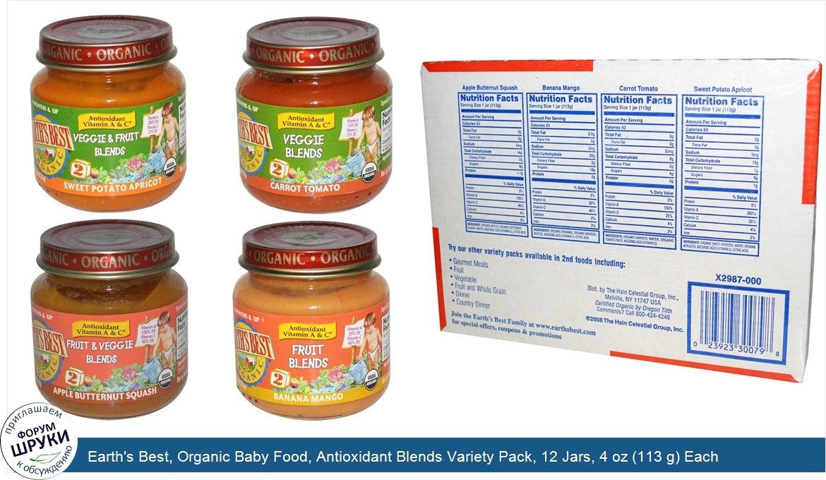 Друзья, если у вас есть отзыв/дополнение/комментарий/вопрос относительно Earth's Best, Organic Baby Food, Antioxidant Blends Variety Pack, 12 Jars, 4 oz (113 g) Each - напишите его ответом в эту тему (это будет полезно всему сообществу в целом и вам в отдельности).