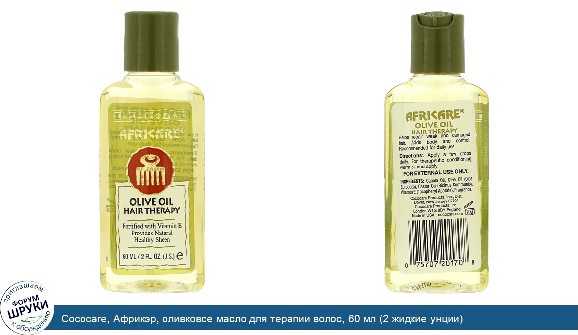 Друзья, если у вас есть отзыв/дополнение/комментарий/вопрос относительно Cococare, Африкэр, оливковое масло для терапии волос, 60 мл (2 жидкие унции) - напишите его ответом в эту тему (это будет полезно всему сообществу в целом и вам в отдельности).