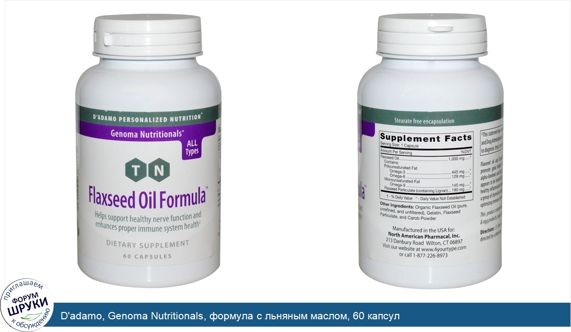 D\'adamo, Genoma Nutritionals, формула с льняным маслом, 60 капсул