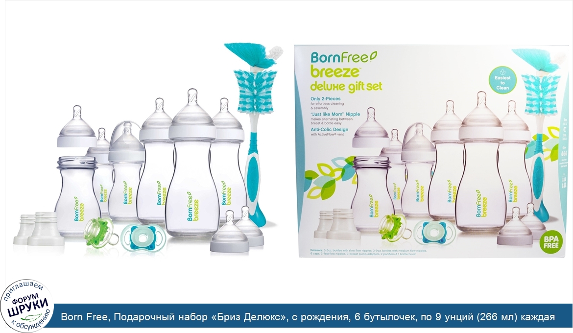 Друзья, если у вас есть отзыв/дополнение/комментарий/вопрос относительно Born Free, Подарочный набор «Бриз Делюкс», с рождения, 6 бутылочек, по 9 унций (266 мл) каждая - напишите его ответом в эту тему (это будет полезно всему сообществу в целом и вам в отдельности).