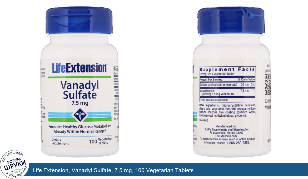 Друзья, если у вас есть отзыв/дополнение/комментарий/вопрос относительно Life Extension, Vanadyl Sulfate, 7.5 mg, 100 Vegetarian Tablets - напишите его ответом в эту тему (это будет полезно всему сообществу в целом и вам в отдельности).
