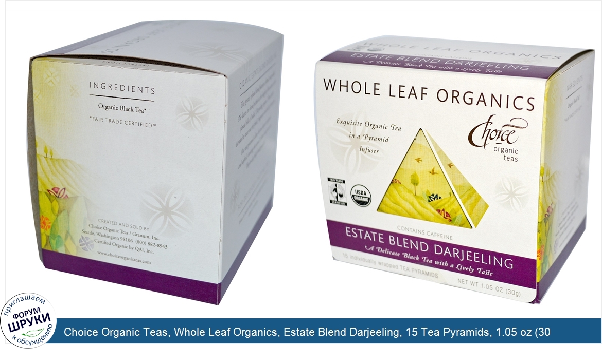 Choice Organic Teas, Whole Leaf Organics, Estate Blend Darjeeling, 15 Tea Pyramids, 1.05 oz (30 g)