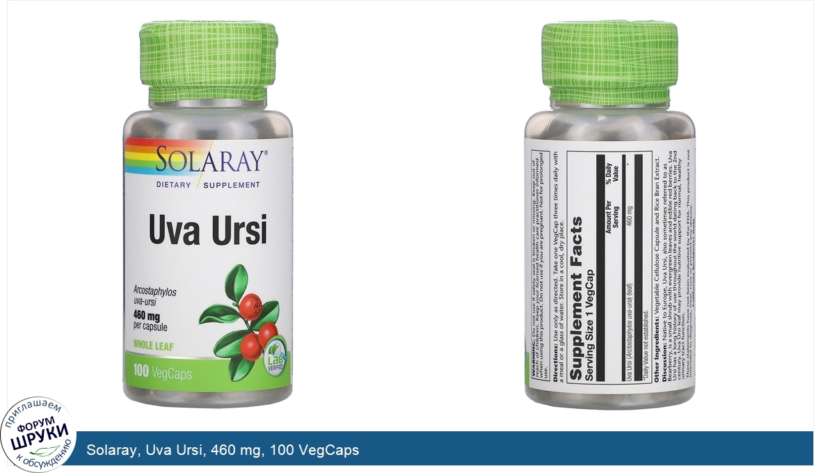Друзья, если у вас есть отзыв/дополнение/комментарий/вопрос относительно Solaray, Uva Ursi, 460 mg, 100 VegCaps - напишите его ответом в эту тему (это будет полезно всему сообществу в целом и вам в отдельности).