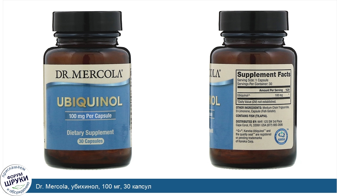 Dr. Mercola, убихинол, 100 мг, 30 капсул