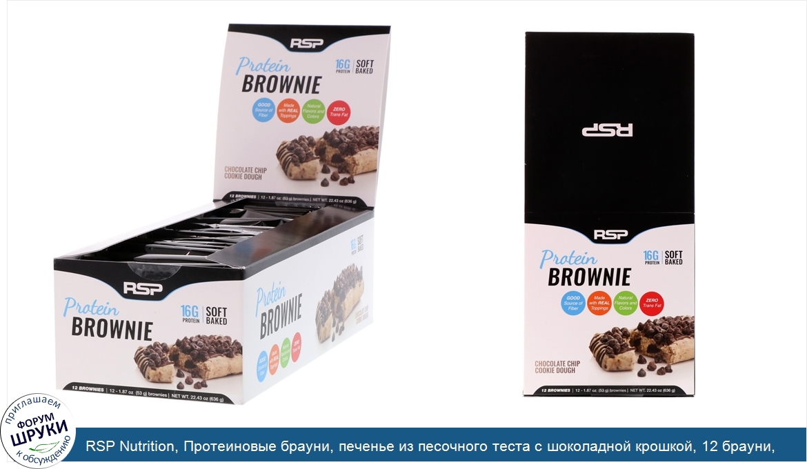 ru RSP Nutrition, Протеиновые брауни, печенье из песочного теста с шоколадной крошкой, 12 брауни, 1,87 унц. (53 г) каждый