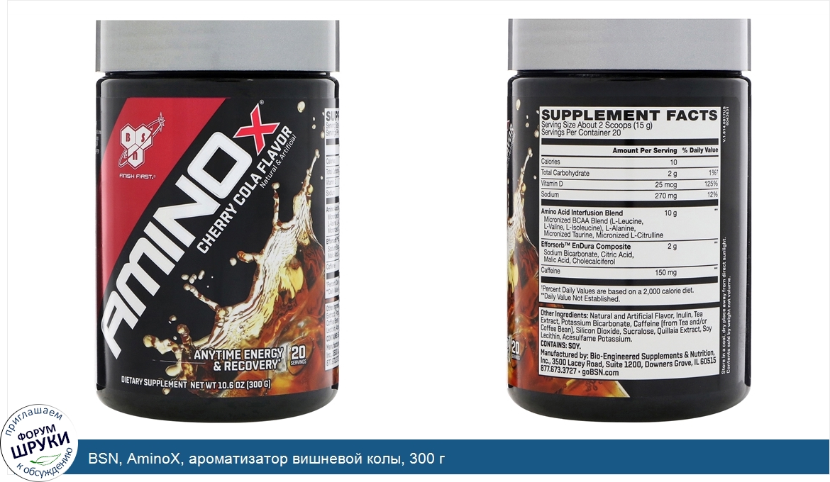 Друзья, если у вас есть отзыв/дополнение/комментарий/вопрос относительно BSN, AminoX, ароматизатор вишневой колы, 300 г - напишите его ответом в эту тему (это будет полезно всему сообществу в целом и вам в отдельности).