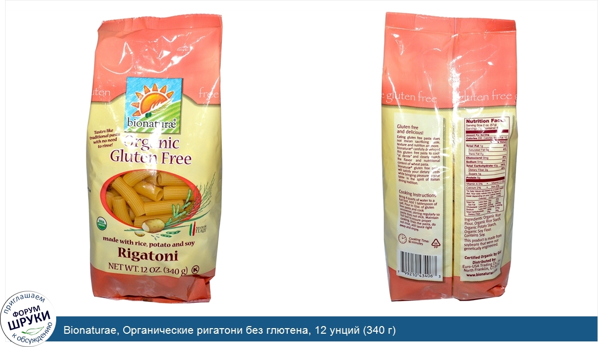 Друзья, если у вас есть отзыв/дополнение/комментарий/вопрос относительно Bionaturae, Органические ригатони без глютена, 12 унций (340 г) - напишите его ответом в эту тему (это будет полезно всему сообществу в целом и вам в отдельности).