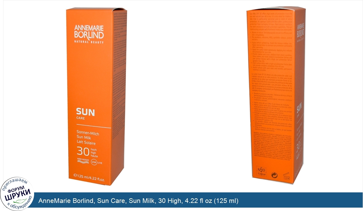 Друзья, если у вас есть отзыв/дополнение/комментарий/вопрос относительно AnneMarie Borlind, Sun Care, Sun Milk, 30 High, 4.22 fl oz (125 ml) - напишите его ответом в эту тему (это будет полезно всему сообществу в целом и вам в отдельности).