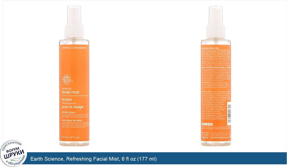 Друзья, если у вас есть отзыв/дополнение/комментарий/вопрос относительно Earth Science, Refreshing Facial Mist, 6 fl oz (177 ml) - напишите его ответом в эту тему (это будет полезно всему сообществу в целом и вам в отдельности).