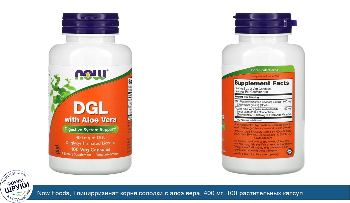 Now Foods, Глицирризинат корня солодки с алоэ вера, 400 мг, 100 растительных капсул