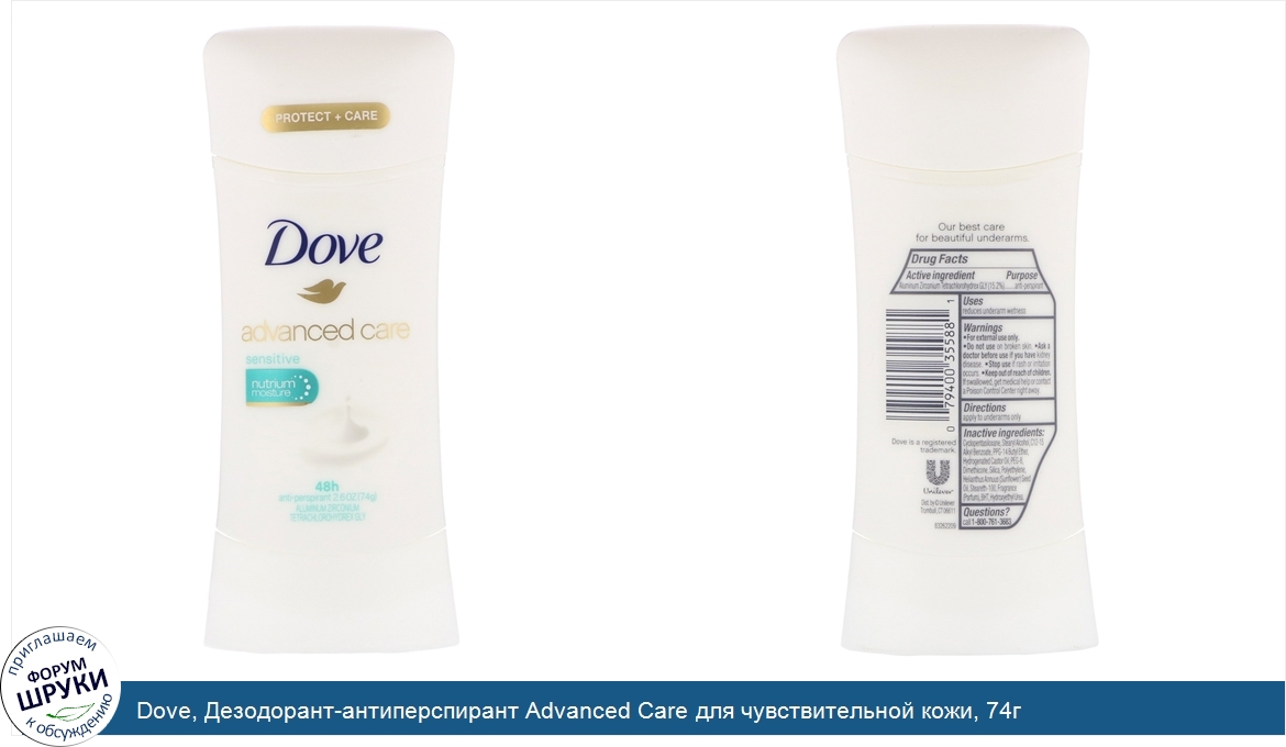 Друзья, если у вас есть отзыв/дополнение/комментарий/вопрос относительно Dove, Дезодорант-антиперспирант Advanced Care для чувствительной кожи, 74г - напишите его ответом в эту тему (это будет полезно всему сообществу в целом и вам в отдельности).