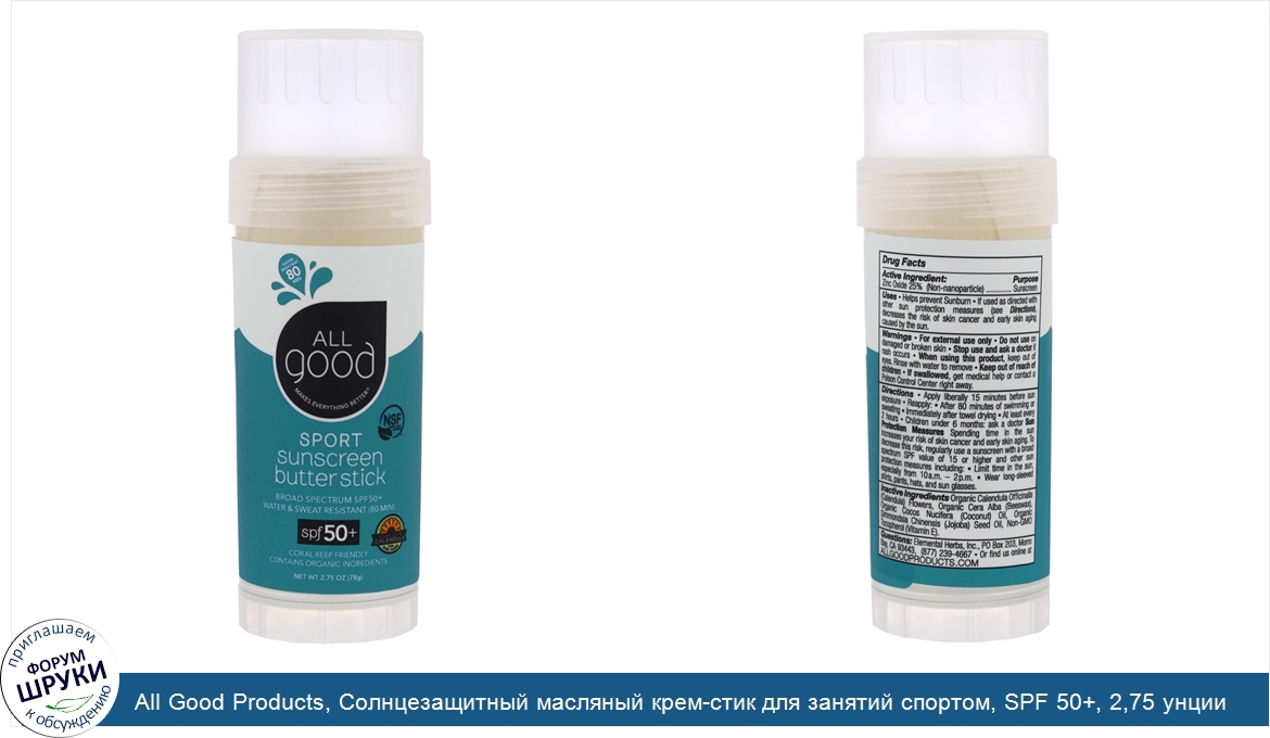 Друзья, если у вас есть отзыв/дополнение/комментарий/вопрос относительно All Good Products, Солнцезащитный масляный крем-стик для занятий спортом, SPF 50+, 2,75 унции (78 г) - напишите его ответом в эту тему (это будет полезно всему сообществу в целом и вам в отдельности).