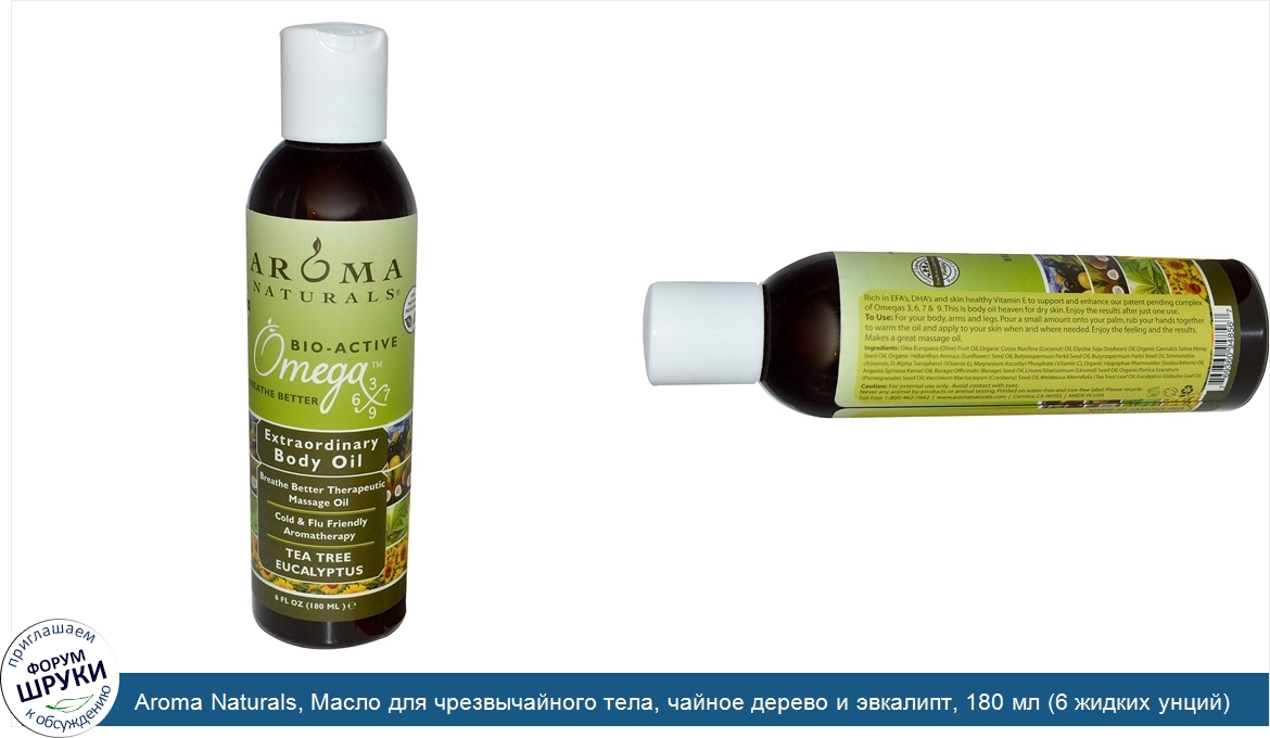 Друзья, если у вас есть отзыв/дополнение/комментарий/вопрос относительно Aroma Naturals, Масло для чрезвычайного тела, чайное дерево и эвкалипт, 180 мл (6 жидких унций) - напишите его ответом в эту тему (это будет полезно всему сообществу в целом и вам в отдельности).