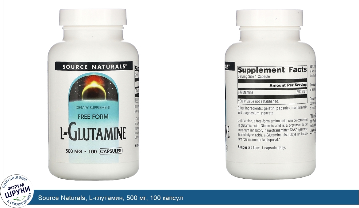 ru Source Naturals, L-глутамин, 500 мг, 100 капсул