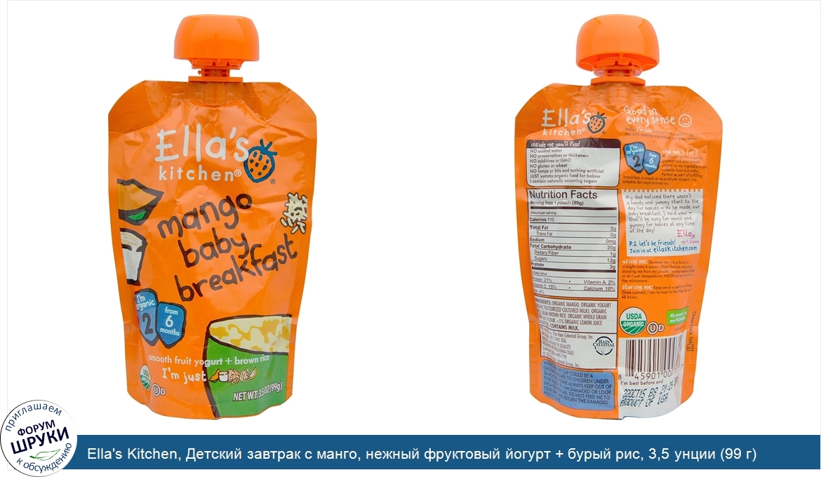 Друзья, если у вас есть отзыв/дополнение/комментарий/вопрос относительно Ella's Kitchen, Детский завтрак с манго, нежный фруктовый йогурт + бурый рис, 3,5 унции (99 г) - напишите его ответом в эту тему (это будет полезно всему сообществу в целом и вам в отдельности).
