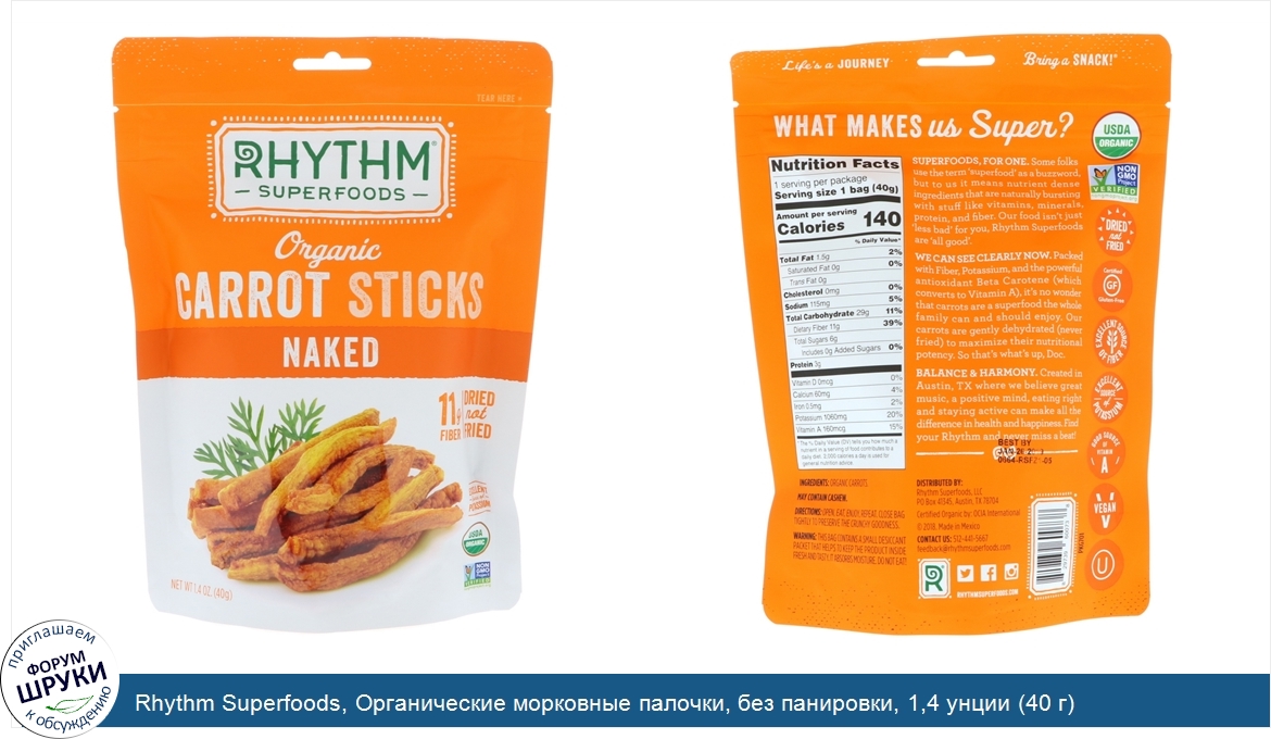 Друзья, если у вас есть отзыв/дополнение/комментарий/вопрос относительно Rhythm Superfoods, Органические морковные палочки, без панировки, 1,4 унции (40 г) - напишите его ответом в эту тему (это будет полезно всему сообществу в целом и вам в отдельности).