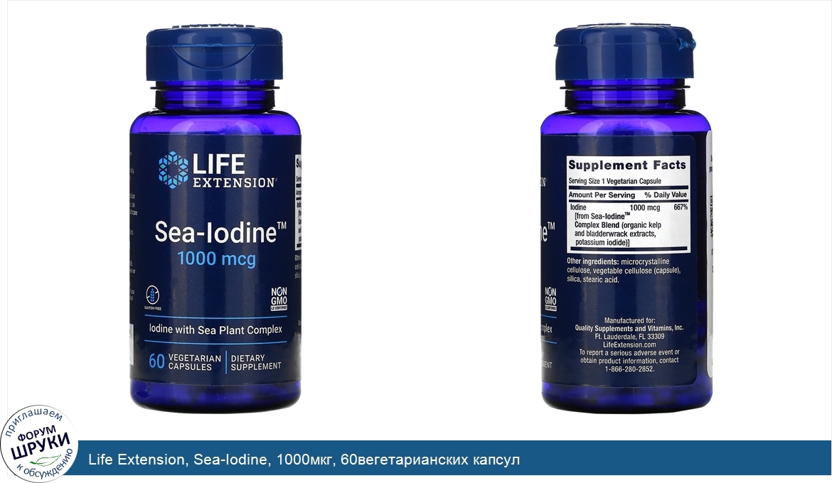 Life Extension, Sea-Iodine, 1000мкг, 60вегетарианских капсул
