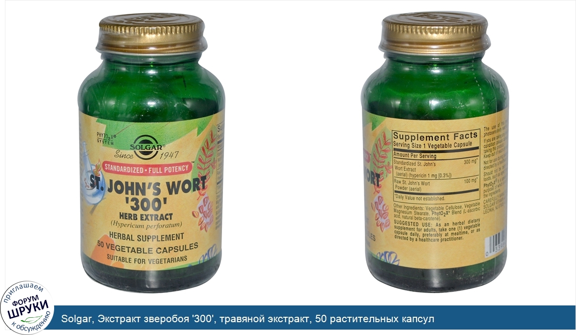 Друзья, если у вас есть отзыв/дополнение/комментарий/вопрос относительно Solgar, Экстракт зверобоя '300', травяной экстракт, 50 растительных капсул - напишите его ответом в эту тему (это будет полезно всему сообществу в целом и вам в отдельности).