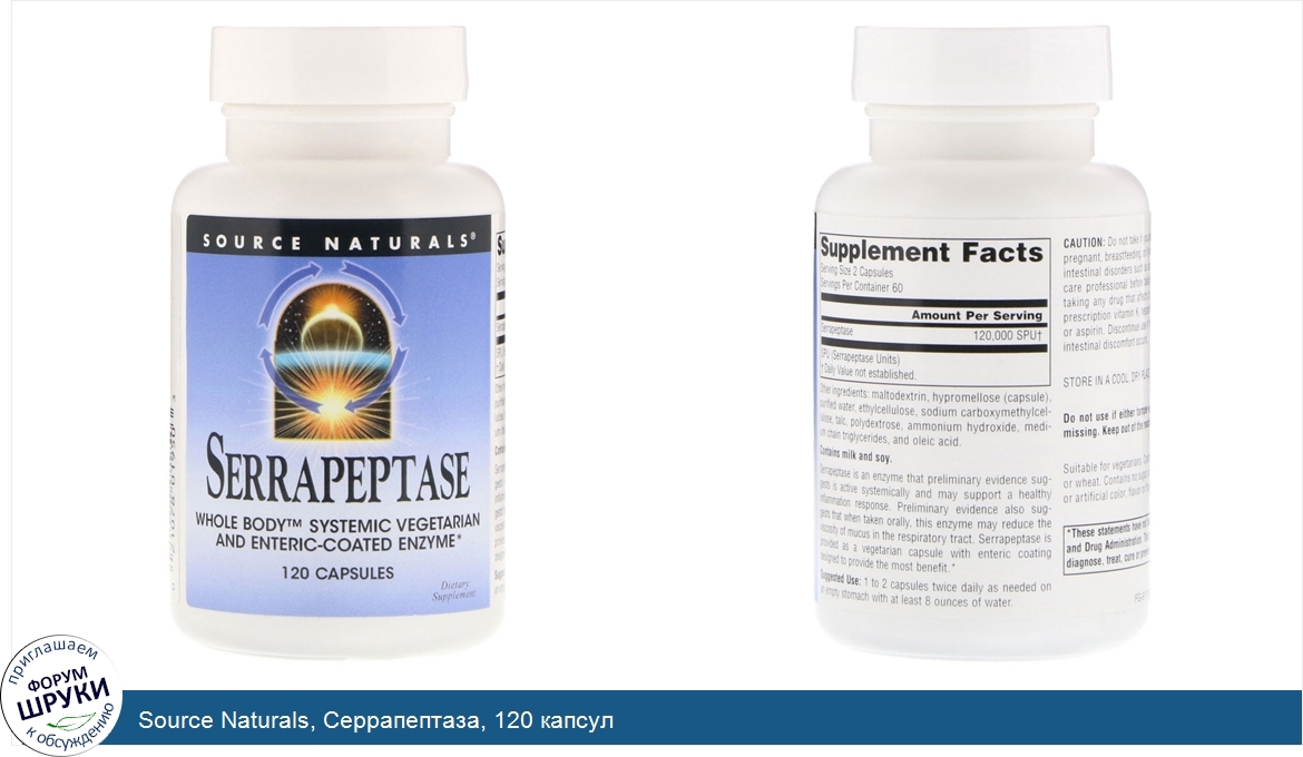 Друзья, если у вас есть отзыв/дополнение/комментарий/вопрос относительно Source Naturals, Серрапептаза, 120 капсул - напишите его ответом в эту тему (это будет полезно всему сообществу в целом и вам в отдельности).