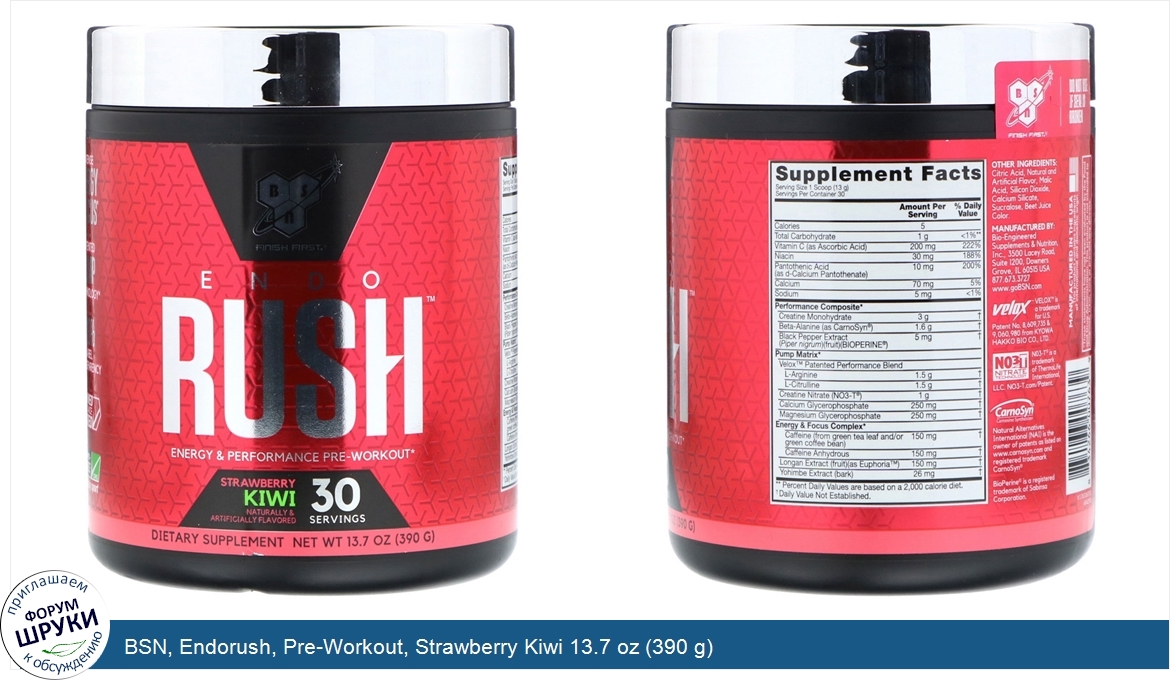 Друзья, если у вас есть отзыв/дополнение/комментарий/вопрос относительно BSN, Endorush, Pre-Workout, Strawberry Kiwi 13.7 oz (390 g) - напишите его ответом в эту тему (это будет полезно всему сообществу в целом и вам в отдельности).