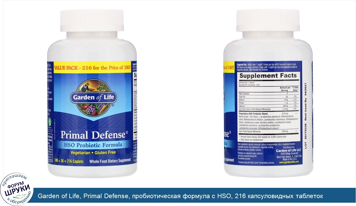 Друзья, если у вас есть отзыв/дополнение/комментарий/вопрос относительно Garden of Life, Primal Defense, пробиотическая формула с HSO, 216 капсуловидных таблеток - напишите его ответом в эту тему (это будет полезно всему сообществу в целом и вам в отдельности).