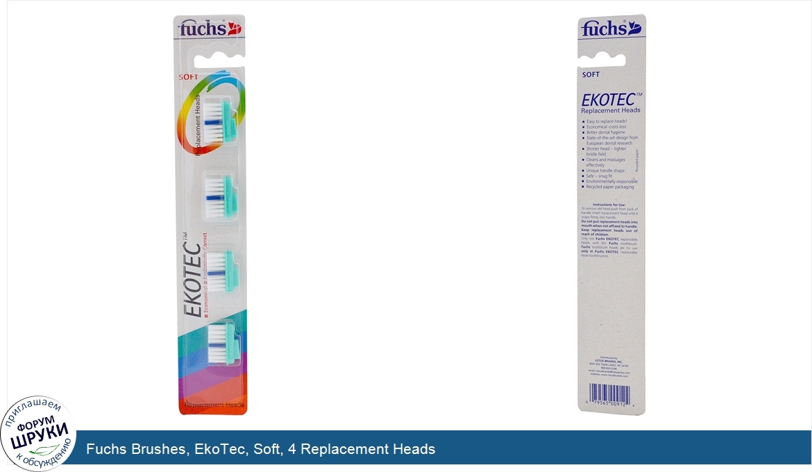 Fuchs Brushes, EkoTec, Soft, 4 Replacement Heads