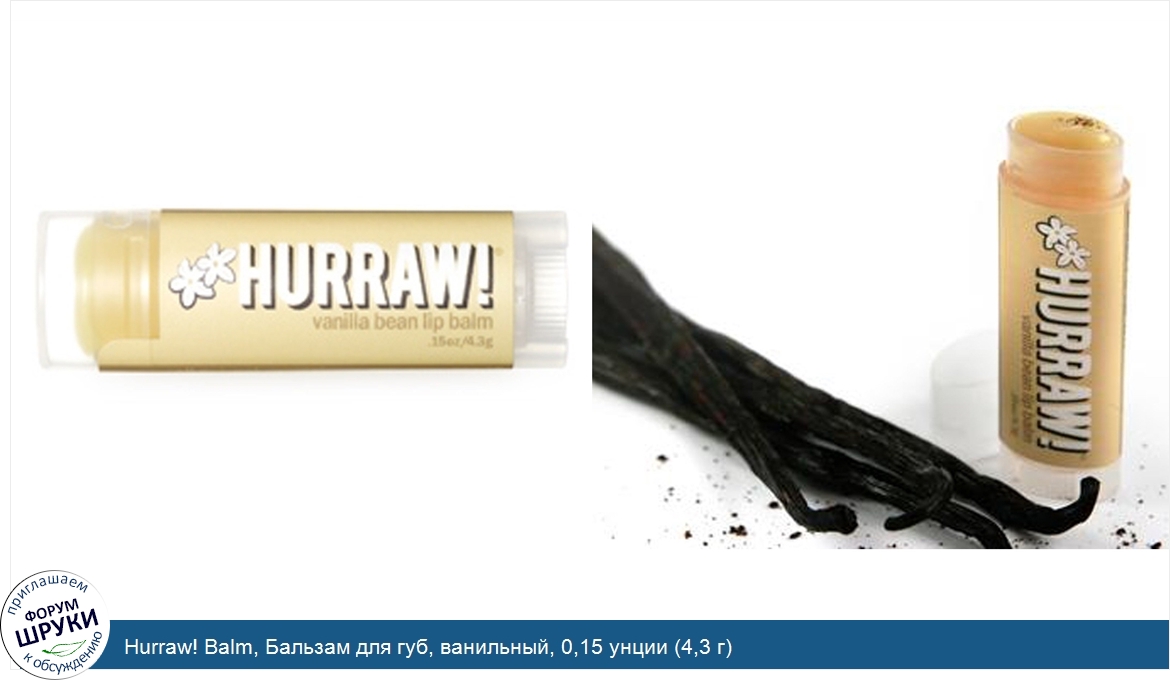 Друзья, если у вас есть отзыв/дополнение/комментарий/вопрос относительно Hurraw! Balm, Бальзам для губ, ванильный, 0,15 унции (4,3 г) - напишите его ответом в эту тему (это будет полезно всему сообществу в целом и вам в отдельности).