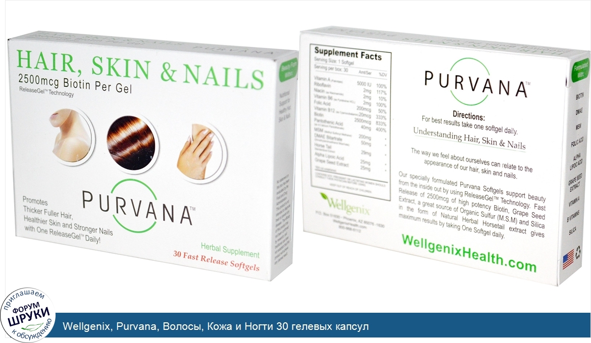 Wellgenix, Purvana, Волосы, Кожа и Ногти 30 гелевых капсул