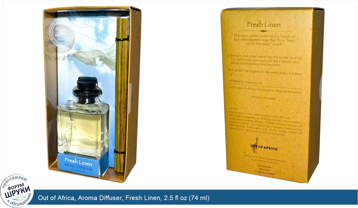 Out of Africa, Aroma Diffuser, Fresh Linen, 2.5 fl oz (74 ml)