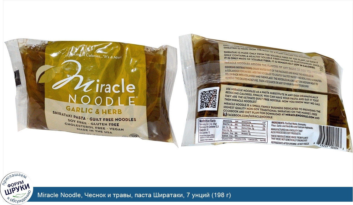 Miracle Noodle, Чеснок и травы, паста Ширатаки, 7 унций (198 г)