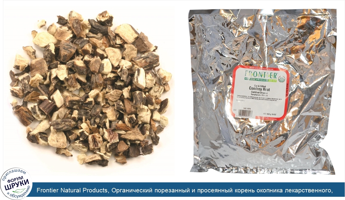 Frontier Natural Products, Органический порезанный и просеянный корень окопника лекарственного, 16 унций (453 г)