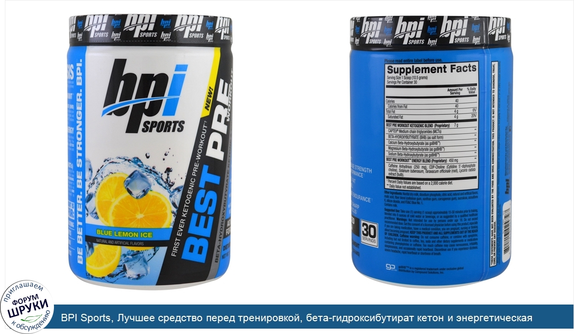 ru BPI Sports, Лучшее средство перед тренировкой, бета-гидроксибутират кетон и энергетическая формула, синий лимонный лед, 11,11 унций (315 г)