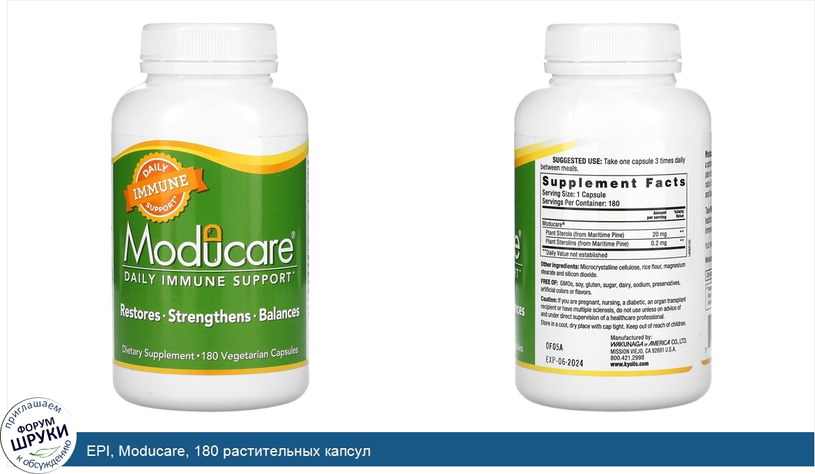 Друзья, если у вас есть отзыв/дополнение/комментарий/вопрос относительно EPI, Moducare, 180 растительных капсул - напишите его ответом в эту тему (это будет полезно всему сообществу в целом и вам в отдельности).