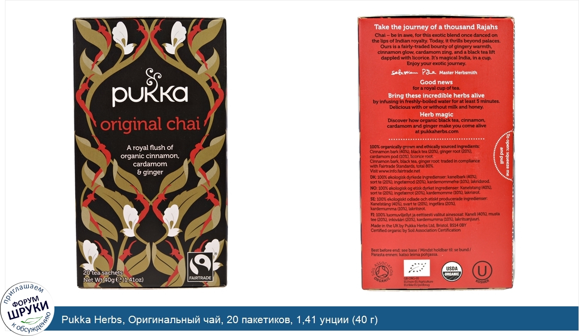 Друзья, если у вас есть отзыв/дополнение/комментарий/вопрос относительно Pukka Herbs, Оригинальный чай, 20 пакетиков, 1,41 унции (40 г) - напишите его ответом в эту тему (это будет полезно всему сообществу в целом и вам в отдельности).