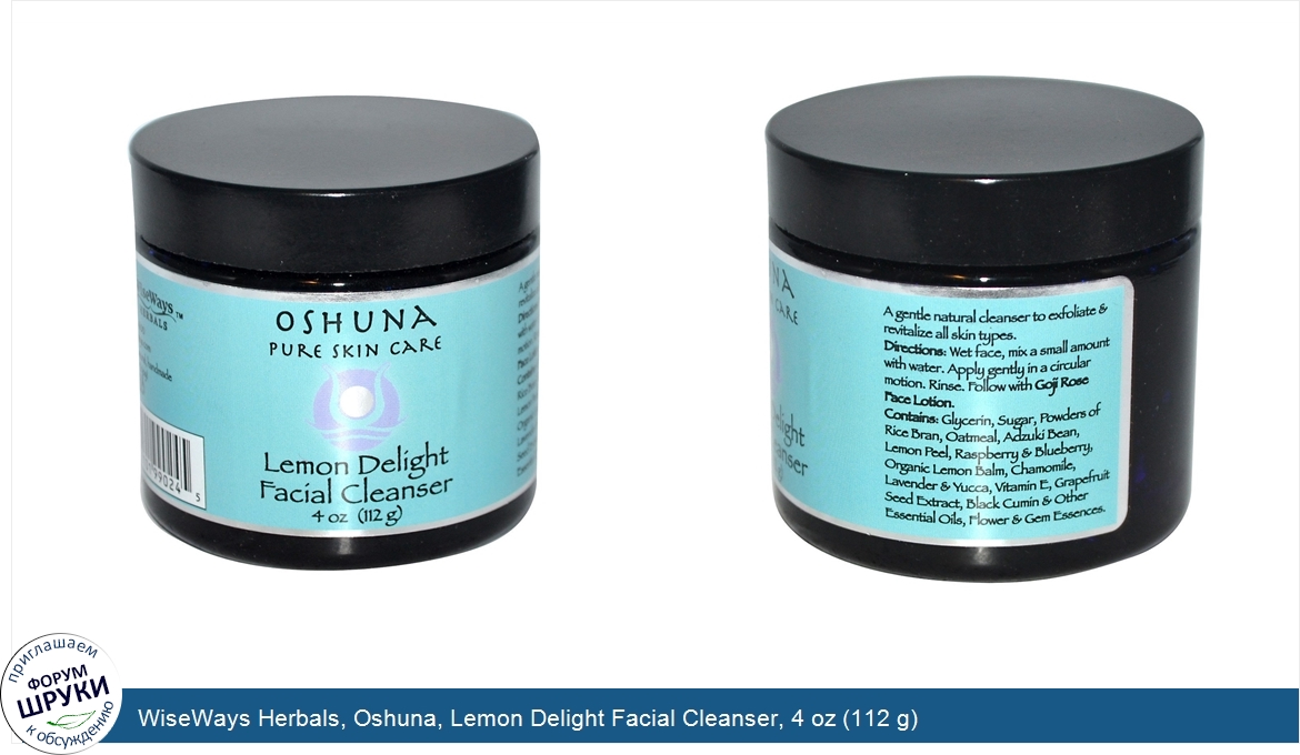 Друзья, если у вас есть отзыв/дополнение/комментарий/вопрос относительно WiseWays Herbals, Oshuna, Lemon Delight Facial Cleanser, 4 oz (112 g) - напишите его ответом в эту тему (это будет полезно всему сообществу в целом и вам в отдельности).