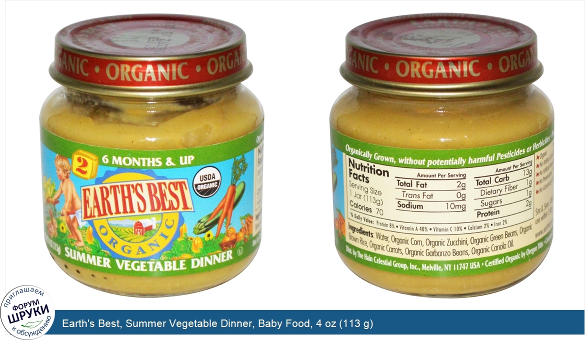 Друзья, если у вас есть отзыв/дополнение/комментарий/вопрос относительно Earth's Best, Summer Vegetable Dinner, Baby Food, 4 oz (113 g) - напишите его ответом в эту тему (это будет полезно всему сообществу в целом и вам в отдельности).
